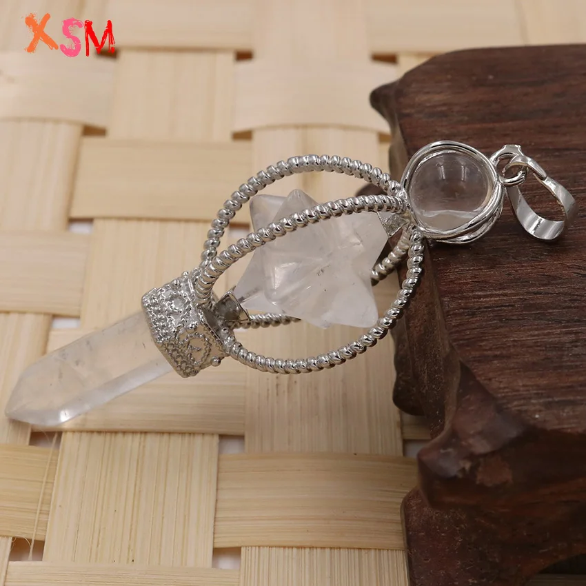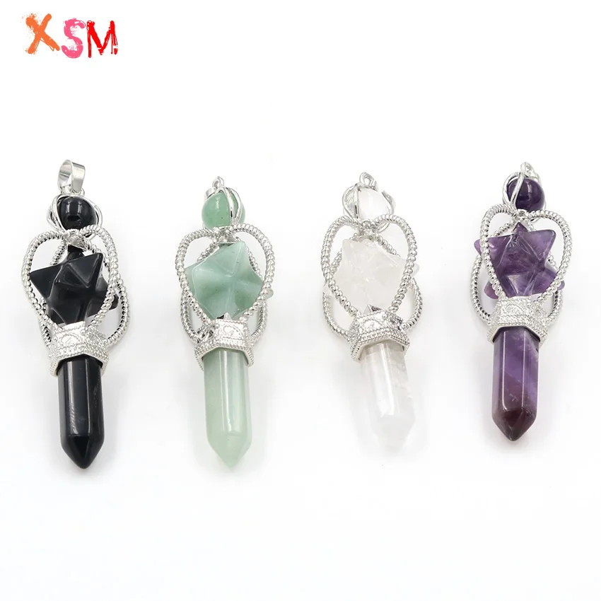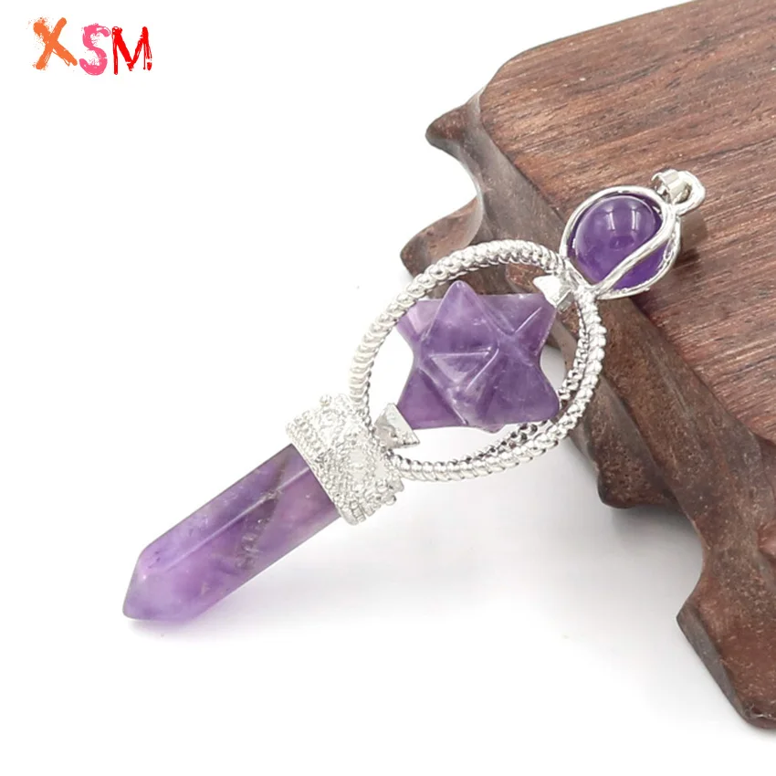 XSM Small Merkaba Pencil Dowsing Pendulum Hexagonal Column Natural Stone Crystal Quartzs Reiki Heal